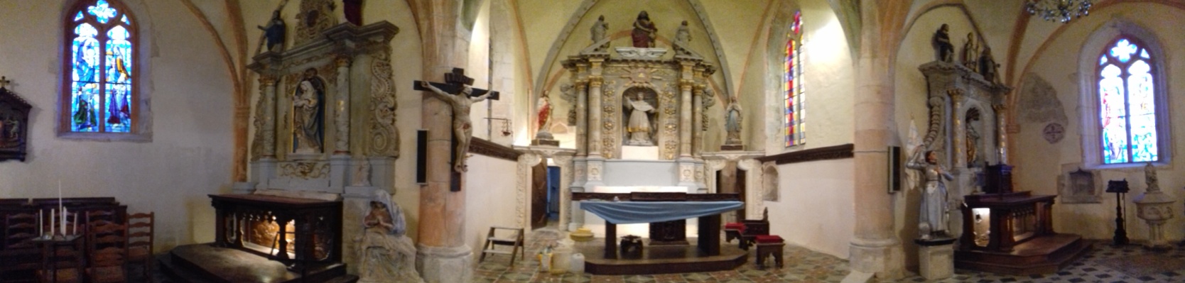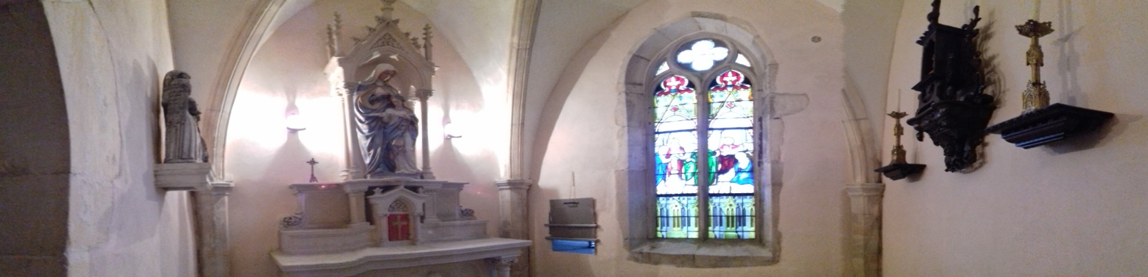 Remarquez avant d’entrer le portail gothique surmonté d’une frise feuillagée et d’un tympan de forme originale en ac-colade. Le mobilier comprend une Vierge de pitié en calcaire polychrome XVe -XVIe et un gisant XVIe . Les vitraux sont signés Benoît frères (1936-1969 atelier installé à Nancy).