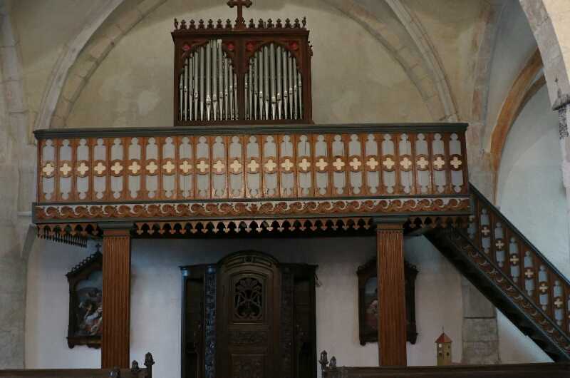 Toutefois l’édifice, de type halle, a conservé sa tour donjon romane XIIIe avec fortifications.